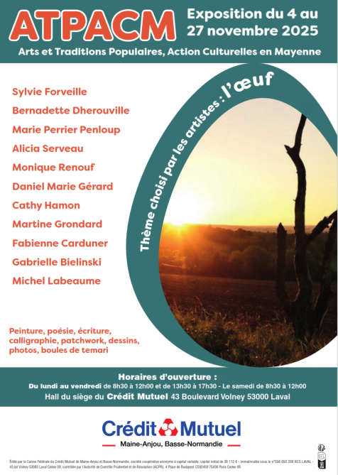 ATPACM (Arts et Traditions Populaires Action Culturelle en Mayenne) organise son exposition d’automne EQUINOXE